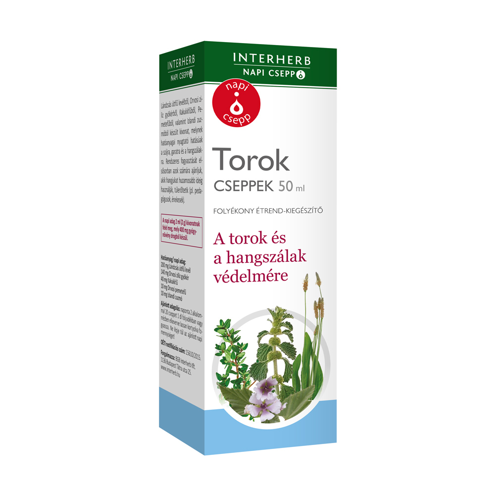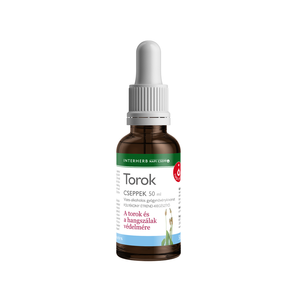 Folyékony étrend-kiegészítőnket a torok és a hangszálak egészségének megőrzéséért fejlesztettük ki. A Torok cseppek ötféle, a hagyományos felhasználásban is ismert gyógynövény – lándzsás útifű levél, orvosi ziliz, pemetefű, kakukkfű és izlandi zuzmó – kivonatát tartalmazza.